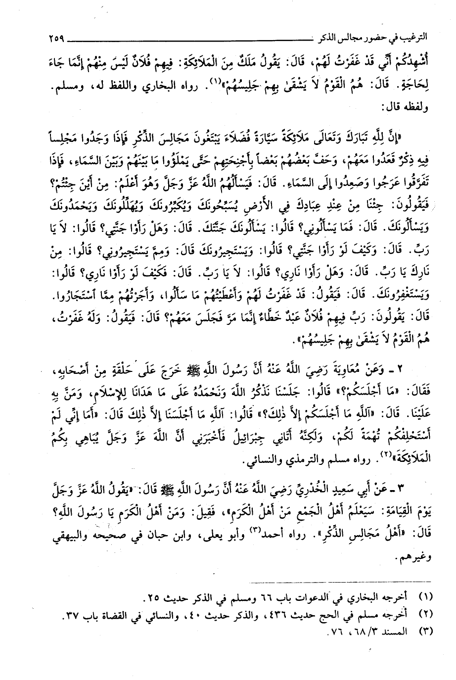 وَلَفظه قَالَ إِن لله تبَارك وَتَعَالَى مَلَائِكَة سيارة فضلاء يَبْتَغُونَ مجَالِس الذّكر فَإِذا وجدوا مَجْلِسا فِيهِ ذكر قعدوا مَعَهم وحف بَعضهم بَعْضًا بأجنحتهم حَتَّى يملؤوا مَا بَينهم وَبَين السَّمَاء فَإِذا تفَرقُوا عرجوا وصعدوا إِلَى السَّمَاء
