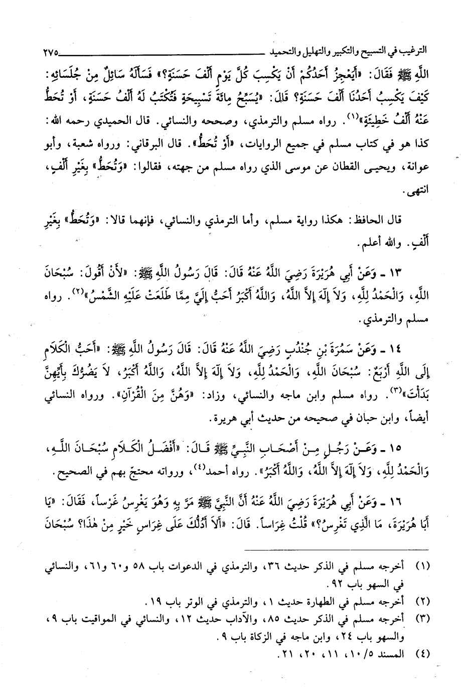 الله صلى الله عَلَيْهِ وَسلم فَقَالَ أَيعْجزُ أحدكُم أَن يكْسب كل يَوْم ألف حَسَنَة فَسَأَلَهُ سَائل من جُلَسَائِهِ كَيفَ يكْسب أَحَدنَا ألف حَسَنَة قَالَ يسبح مائَة تَسْبِيحَة فتكتب لَهُ ألف حَسَنَة أَو تحط عَنهُ ألف خَطِيئَة