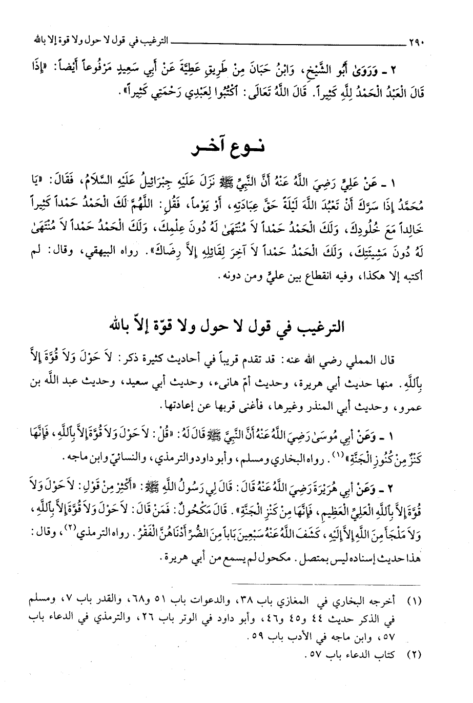 9 - التَّرْغِيب فِي قَول لَا حول وَلَا قُوَّة إِلَّا بِاللَّه قَالَ المملي رَضِي الله عَنهُ قد تقدم قَرِيبا فِي أَحَادِيث كَثِيرَة ذكر لَا حول وَلَا قُوَّة إِلَّا بِاللَّه