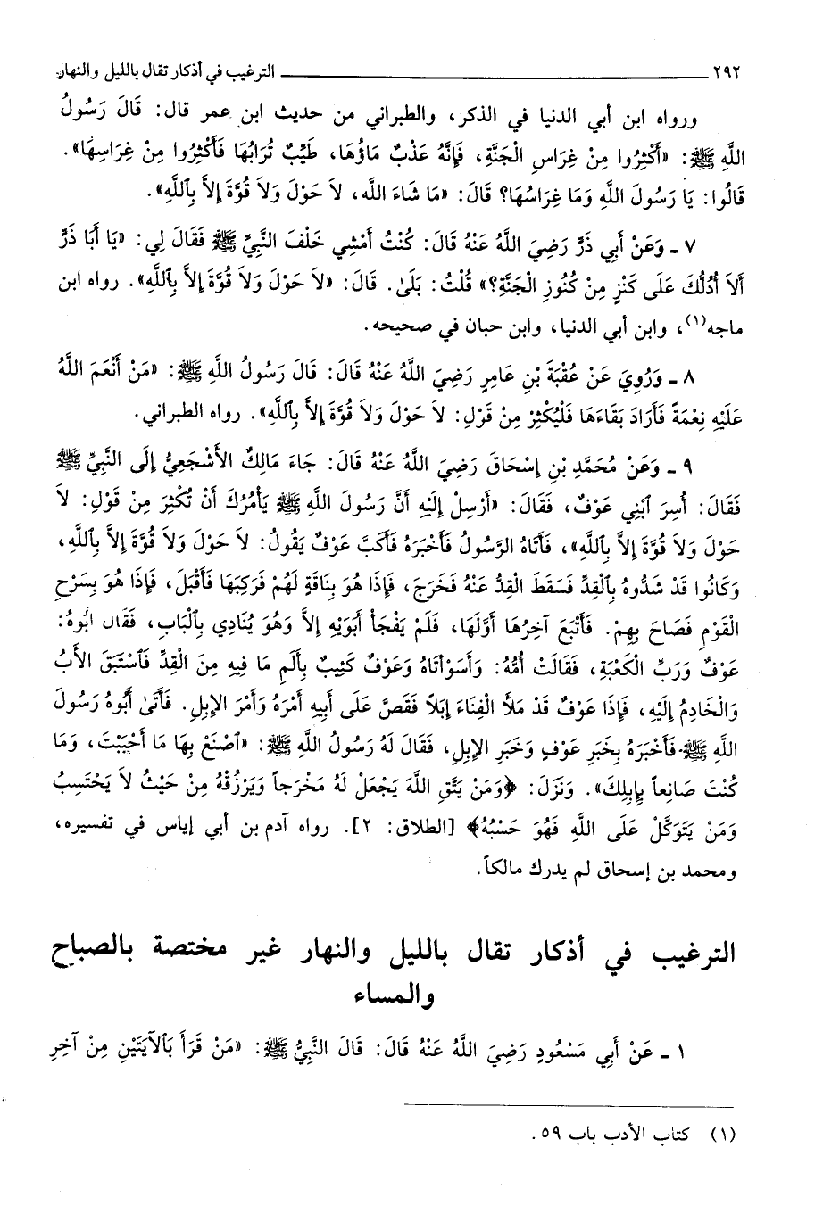 2445 - وَرُوِيَ عَن عقبَة بن عَامر رَضِي الله عَنهُ قَالَ قَالَ رَسُول الله صلى الله عَلَيْهِ وَسلم من أنعم الله عَلَيْهِ نعْمَة فَأَرَادَ بقاءها فليكثر من قَول لَا حول وَلَا قُوَّة إِلَّا بِاللَّه