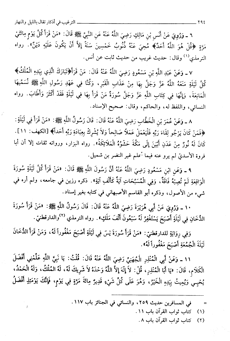 2452 - وَرُوِيَ عَن أنس بن مَالك رَضِي الله عَنهُ عَن النَّبِي صلى الله عَلَيْهِ وَسلم قَالَ من قَرَأَ كل يَوْم مِائَتي مرّة قل هُوَ الله أحد مُحي عَنهُ ذنُوب خمسين سنة إِلَّا أَن يكون عَلَيْهِ دين
