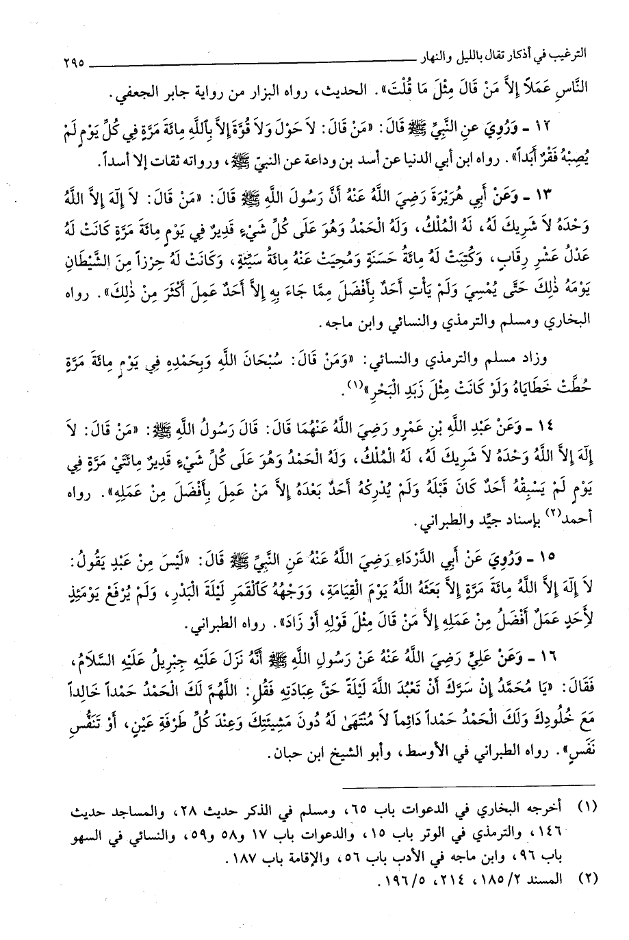 2460 - وَعَن عبد الله بن عَمْرو رَضِي الله عَنْهُمَا قَالَ قَالَ رَسُول الله صلى الله عَلَيْهِ وَسلم من قَالَ لَا إِلَه إِلَّا الله وَحده لَا شريك لَهُ لَهُ الْملك وَله الْحَمد وَهُوَ على كل شَيْء قدير مِائَتي مرّة فِي يَوْم لم يسْبقهُ أحد كَانَ قبله وَلم يُدْرِكهُ أحد بعده إِلَّا من عمل بِأَفْضَل من عمله