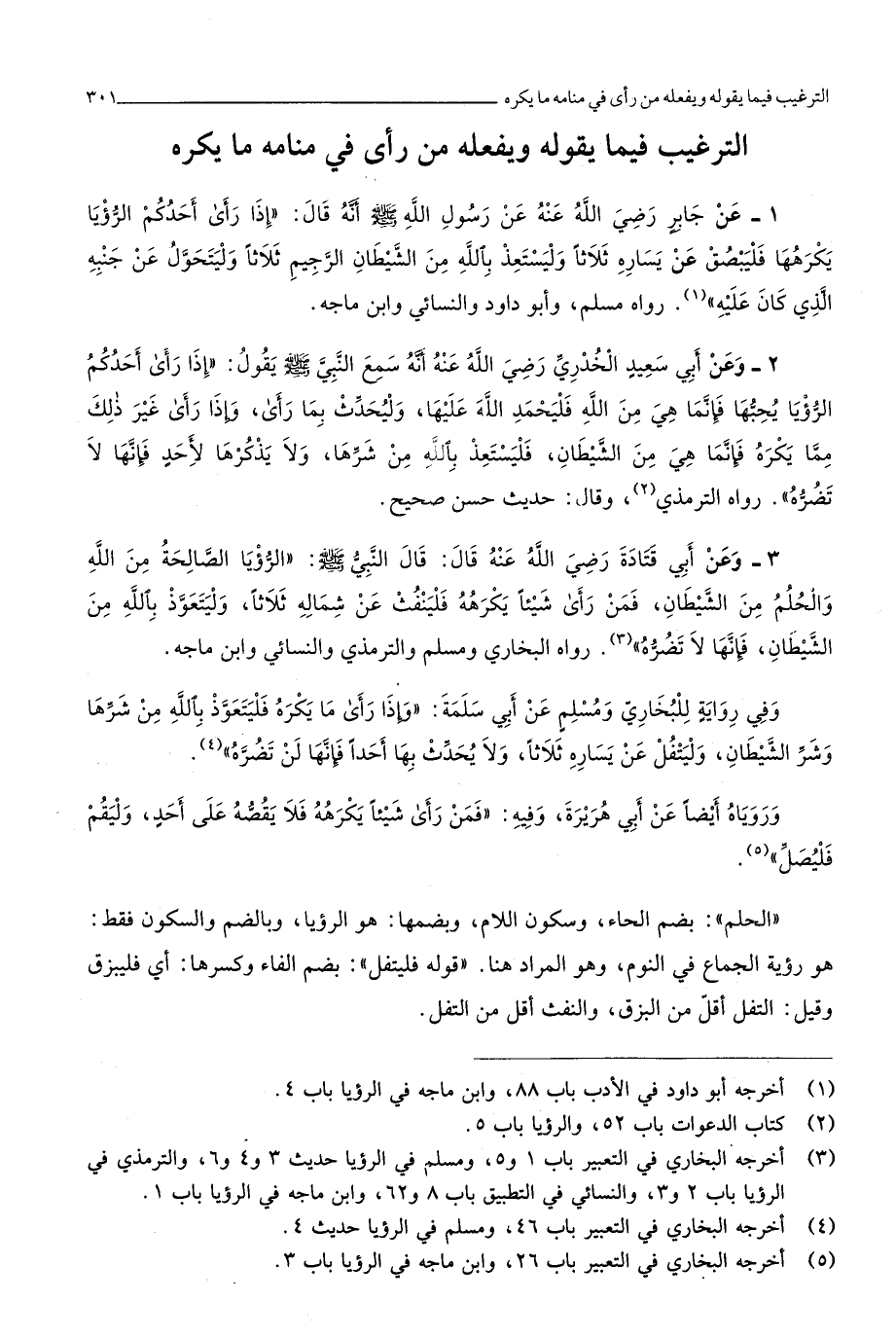 2 - التَّرْغِيب فِيمَا يَقُوله ويفعله من رأى فِي مَنَامه مَا يكره
