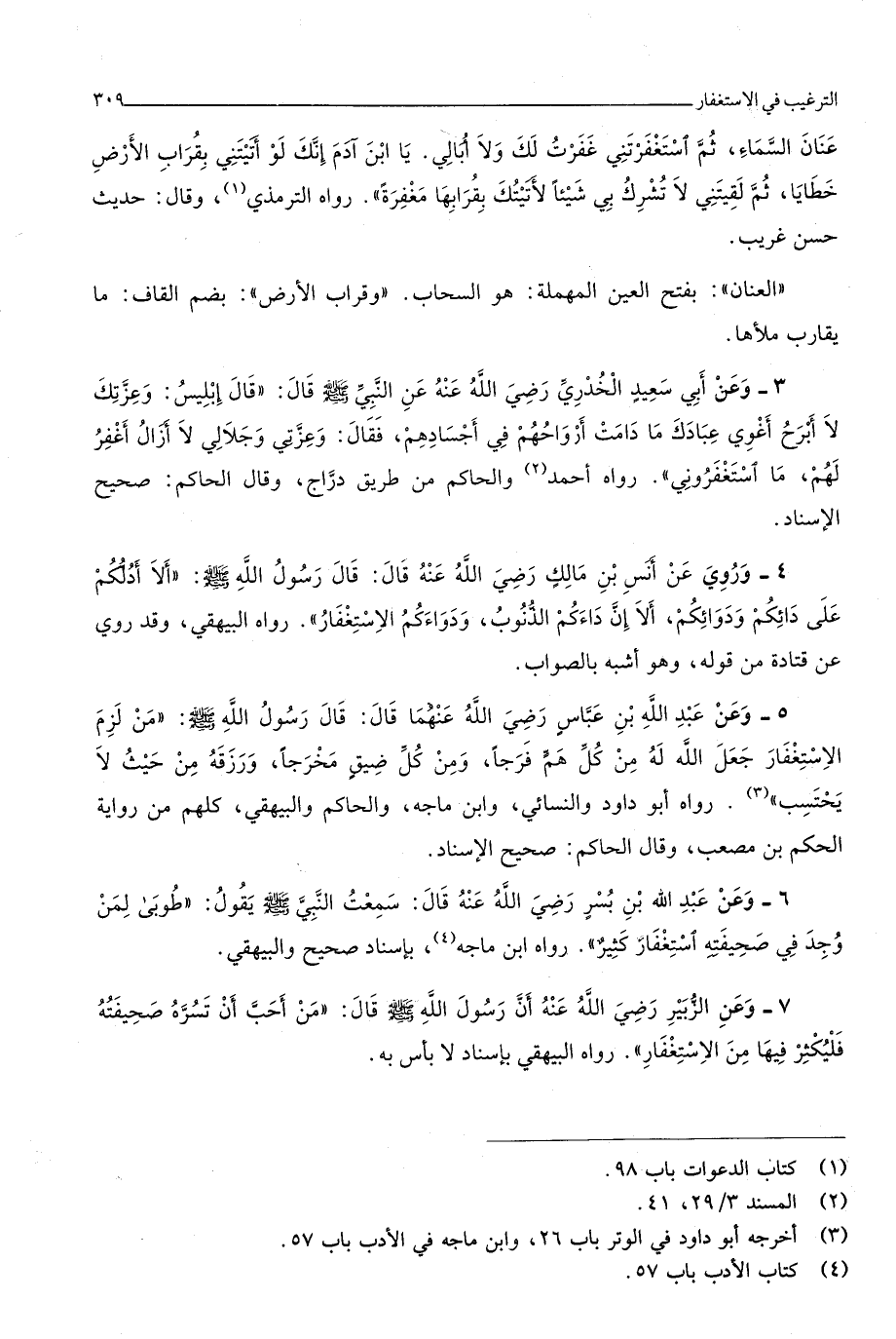 رَوَاهُ أَبُو دَاوُد وَالنَّسَائِيّ وَابْن مَاجَه وَالْحَاكِم وَالْبَيْهَقِيّ كلهم من رِوَايَة الحكم بن مُصعب وَقَالَ الْحَاكِم صَحِيح الْإِسْنَاد
