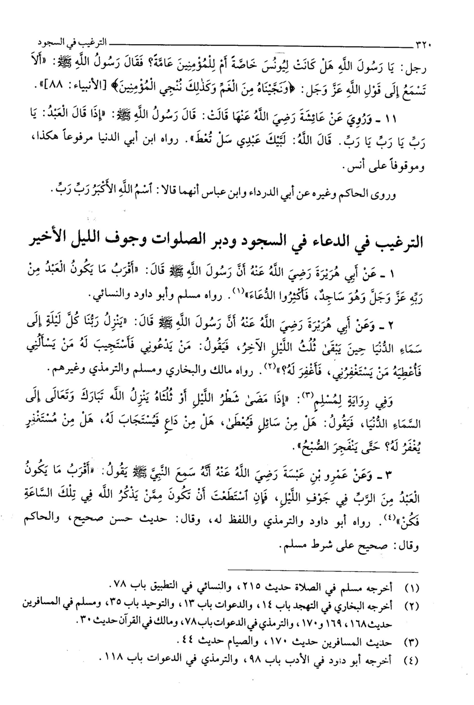 2547 - عَن أبي هُرَيْرَة رَضِي الله عَنهُ أَن رَسُول الله صلى الله عَلَيْهِ وَسلم قَالَ أقرب مَا يكون العَبْد من ربه عز وَجل وَهُوَ ساجد فَأَكْثرُوا الدُّعَاء