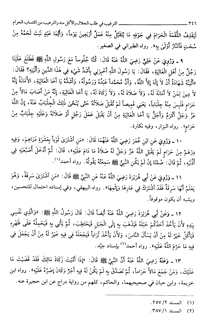 2665 - وَرُوِيَ عَن عَليّ رَضِي الله عَنهُ قَالَ كُنَّا جُلُوسًا مَعَ رَسُول الله صلى الله عَلَيْهِ وَسلم فطلع علينا رجل من أهل الْعَالِيَة فَقَالَ يَا رَسُول الله أَخْبرنِي بأشد شَيْء فِي هَذَا الدّين وألينه فَقَالَ ألينه شَهَادَة أَن لَا إِلَه إِلَّا الله وَأَن مُحَمَّدًا عَبده وَرَسُوله وأشده يَا أَخا الْعَالِيَة الْأَمَانَة إِنَّه لَا دين لمن لَا أَمَانَة لَهُ وَلَا صَلَاة لَهُ وَلَا زَكَاة لَهُ يَا أَخا الْعَالِيَة إِنَّه من أصَاب مَالا من حرَام فَلبس مِنْهُ جلبابا يَعْنِي قَمِيصًا لم تقبل صلَاته حَتَّى ينحى ذَلِك الجلباب عَنهُ إِن الله عز وَجل أكْرم وَأجل يَا أَخا الْعَالِيَة من أَن يقبل عمل رجل أَو صلَاته وَعَلِيهِ جِلْبَاب من حرَام