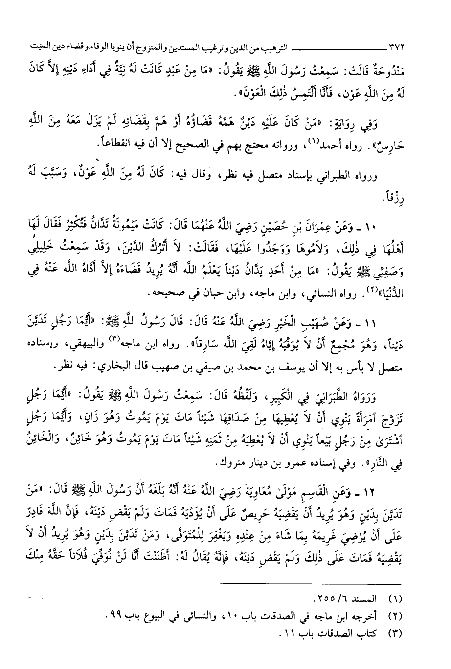 مندوحة قَالَت سَمِعت رَسُول الله صلى الله عَلَيْهِ وَسلم يَقُول مَا من عبد كَانَت لَهُ نِيَّة فِي أَدَاء دينه إِلَّا كَانَ لَهُ من الله عون فَأَنا ألتمس ذَلِك العون