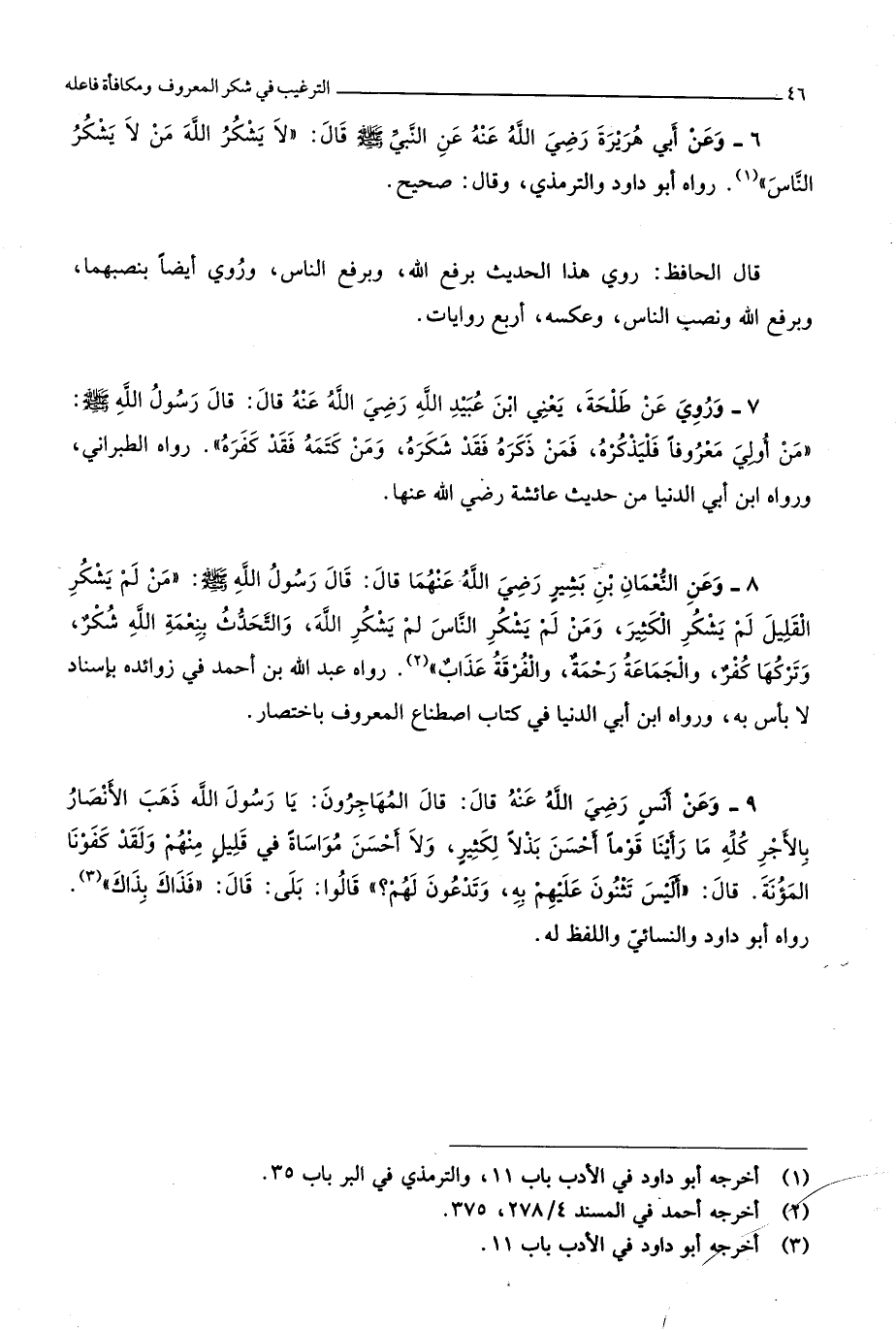 1437 - وَعَن أبي هُرَيْرَة رَضِي الله عَنهُ عَن النَّبِي صلى الله عَلَيْهِ وَسلم قَالَ لَا يشْكر الله من لَا يشْكر النَّاس