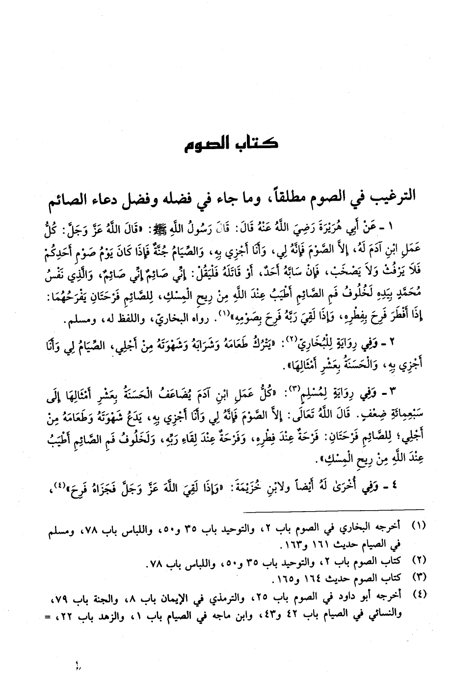 كتاب الصَّوْم التَّرْغِيب فِي الصَّوْم مُطلقًا وَمَا جَاءَ فِي فَضله وَفضل دُعَاء الصَّائِم