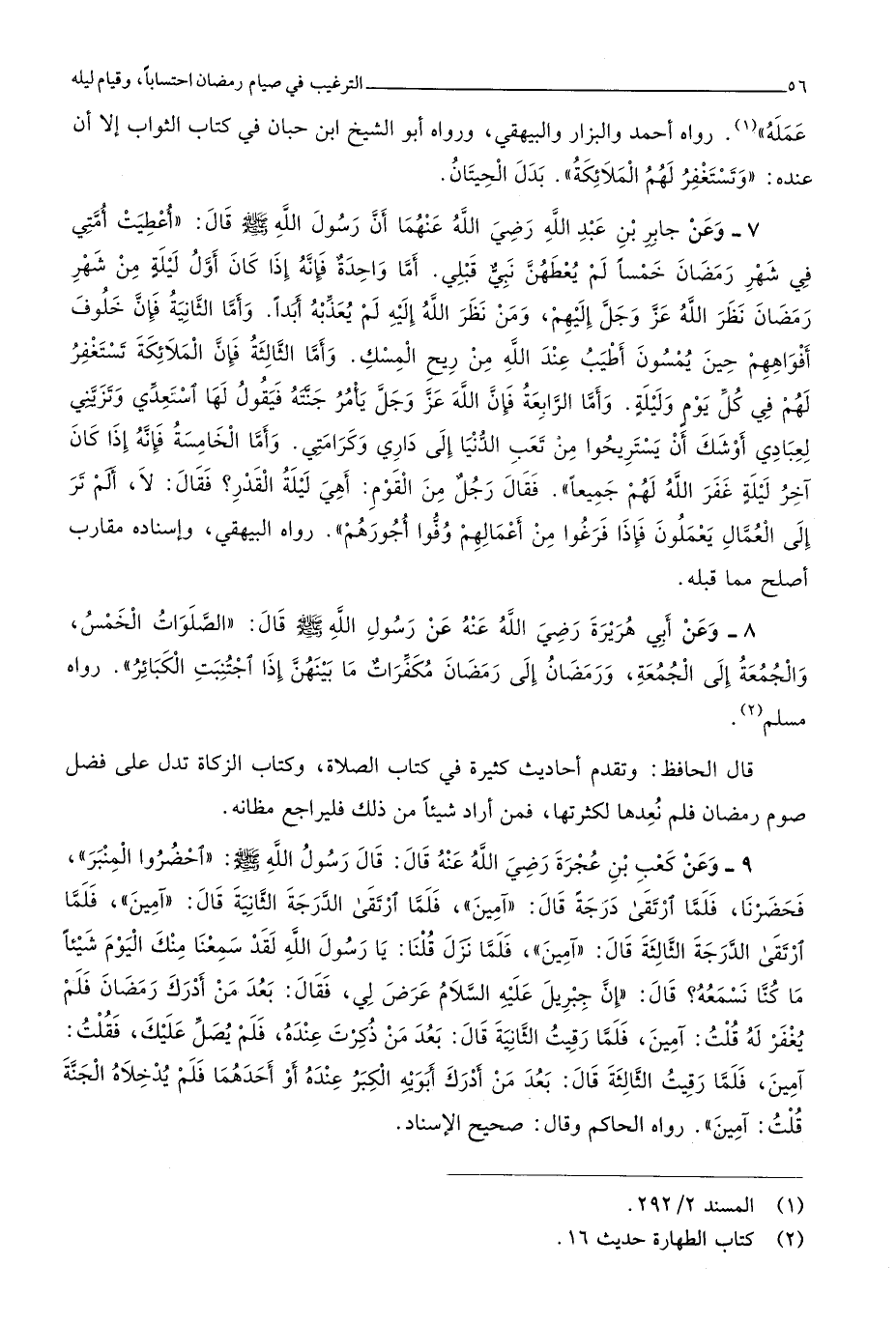 قَالَ الْحَافِظ وَتقدم أَحَادِيث كَثِيرَة فِي كتاب الصَّلَاة وَكتاب الزَّكَاة تدل على فضل صَوْم رَمَضَان فَلم نعدها لكثرتها فَمن أَرَادَ شَيْئا من ذَلِك فَليُرَاجع مظانه