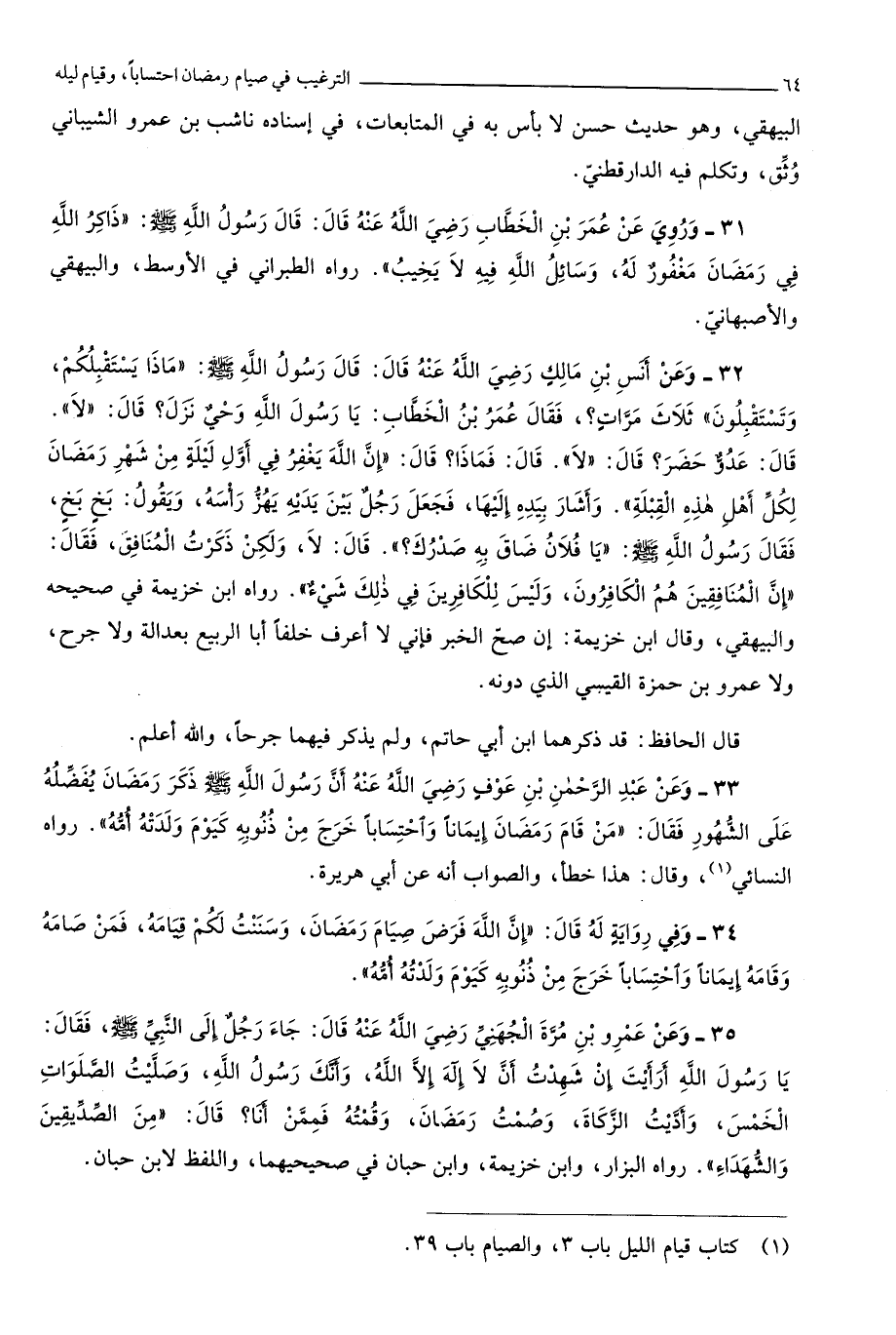 الْبَيْهَقِيّ وَهُوَ حَدِيث حسن لَا بَأْس بِهِ فِي المتابعات فِي إِسْنَاده ناشب بن عَمْرو الشيبان وثق وَتكلم فِيهِ الدَّارَقُطْنِيّ