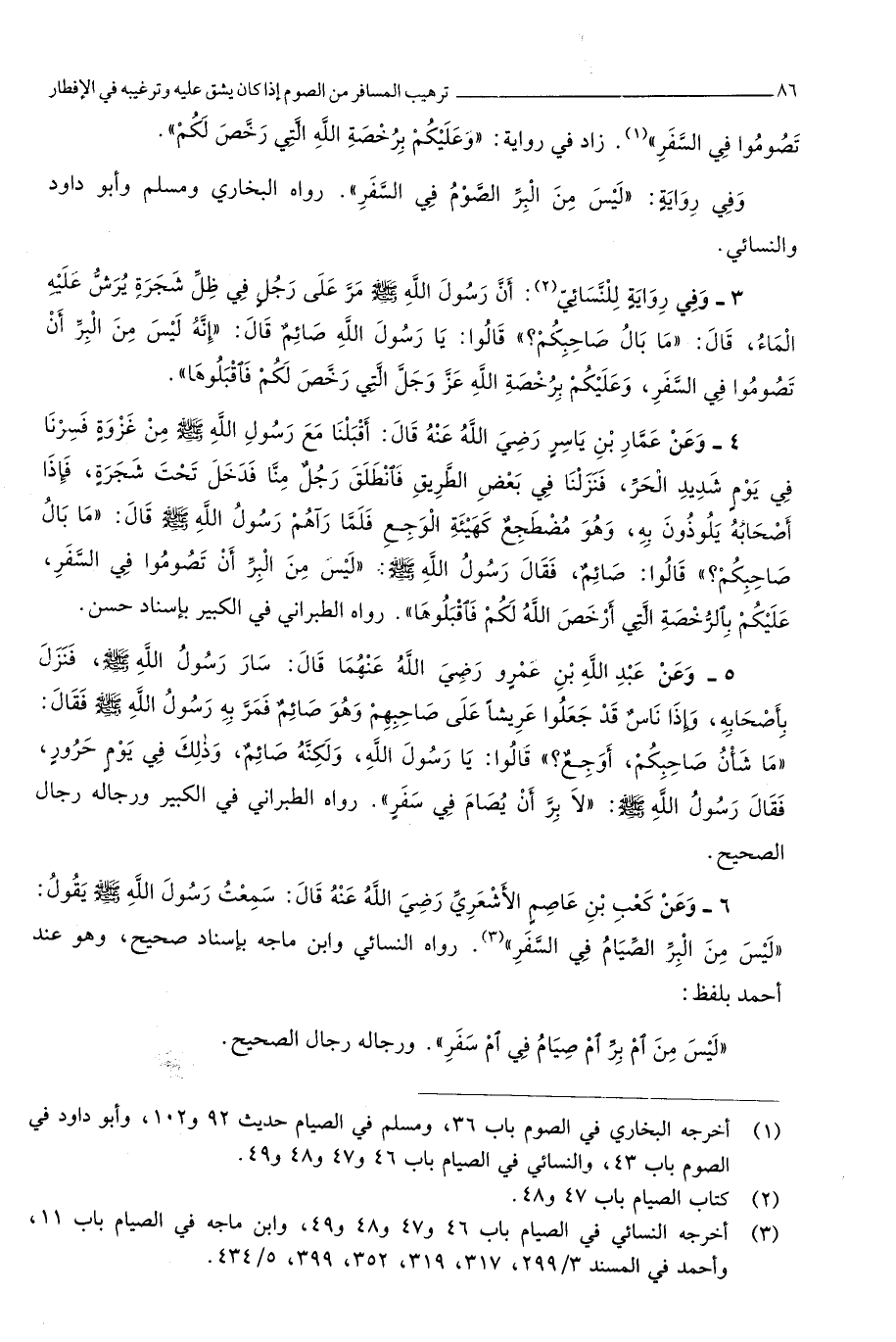 رَوَاهُ النَّسَائِيّ وَابْن مَاجَه بِإِسْنَاد صَحِيح وَهُوَ عِنْد أَحْمد بِلَفْظ لَيْسَ من ام بر ام صِيَام فِي ام سفر