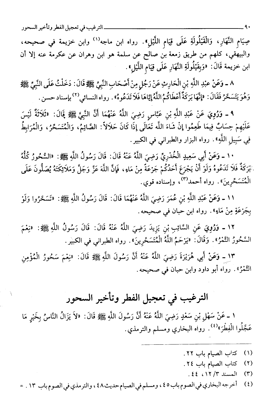 رَوَاهُ ابْن مَاجَه وَابْن خُزَيْمَة فِي صَحِيحه وَالْبَيْهَقِيّ كلهم من طَرِيق زَمعَة بن صَالح عَن سَلمَة هُوَ ابْن وهران عَن عِكْرِمَة عَنهُ إِلَّا أَن ابْن خُزَيْمَة قَالَ وبقيلولة النَّهَار على قيام اللَّيْل