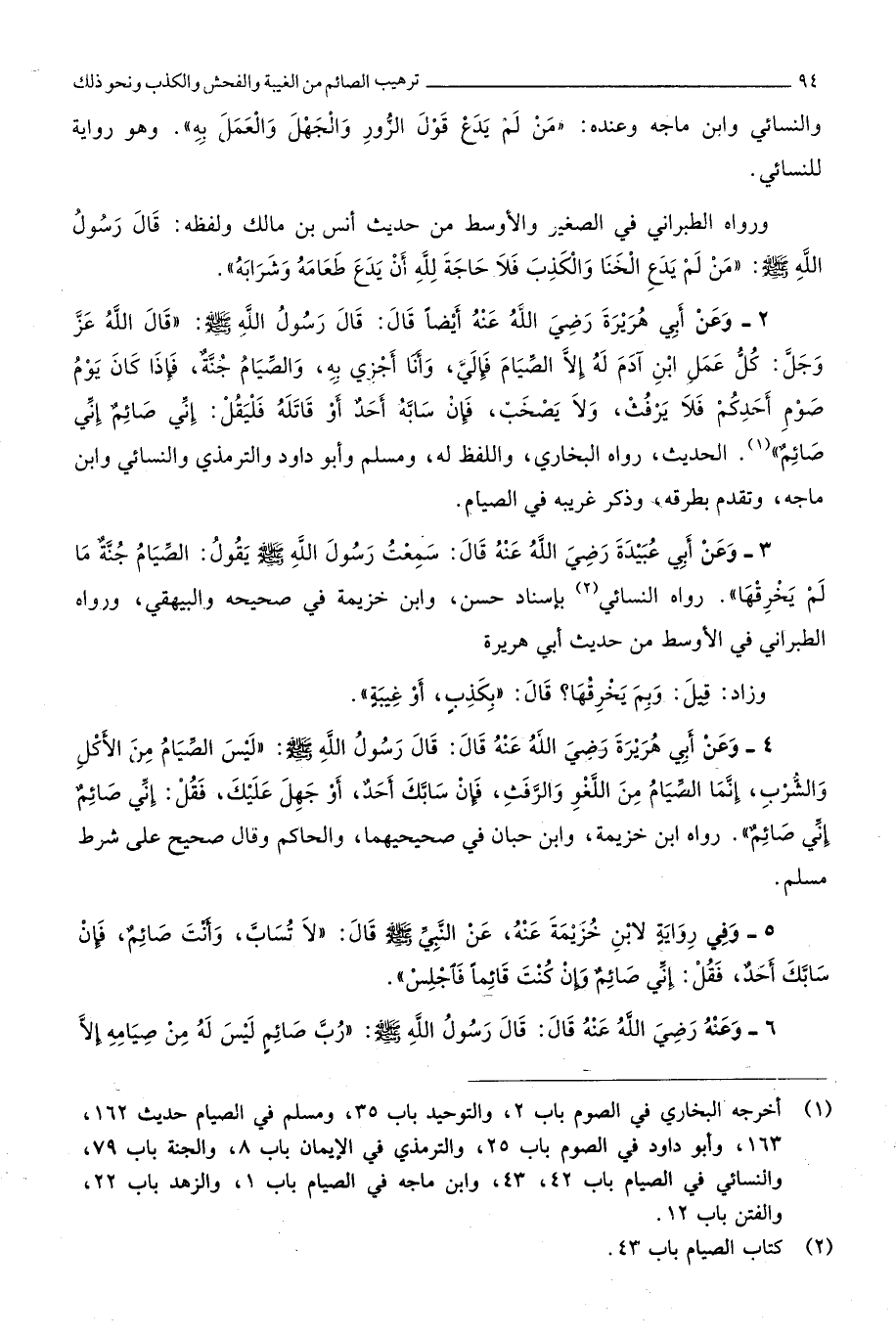الحَدِيث رَوَاهُ البُخَارِيّ وَاللَّفْظ لَهُ وَمُسلم وَأَبُو دَاوُد وَالتِّرْمِذِيّ وَالنَّسَائِيّ وَابْن مَاجَه وَتقدم بِطرقِهِ وَذكر غَرِيبه فِي الصّيام