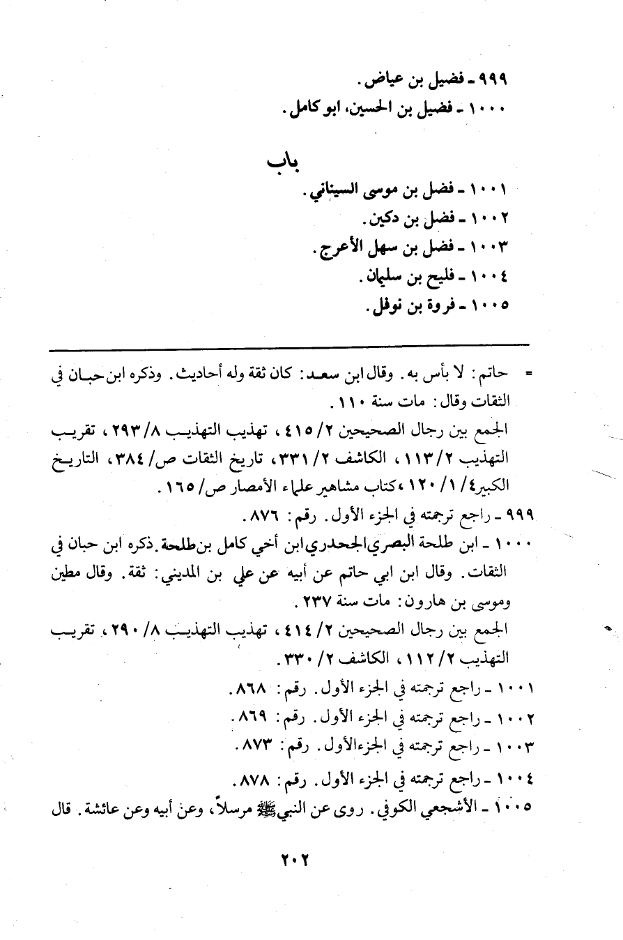 1003 - فضل بن سهل الْأَعْرَج 1004 فليح بن سُلَيْمَان 1005 - فَرْوَة بن نَوْفَل
