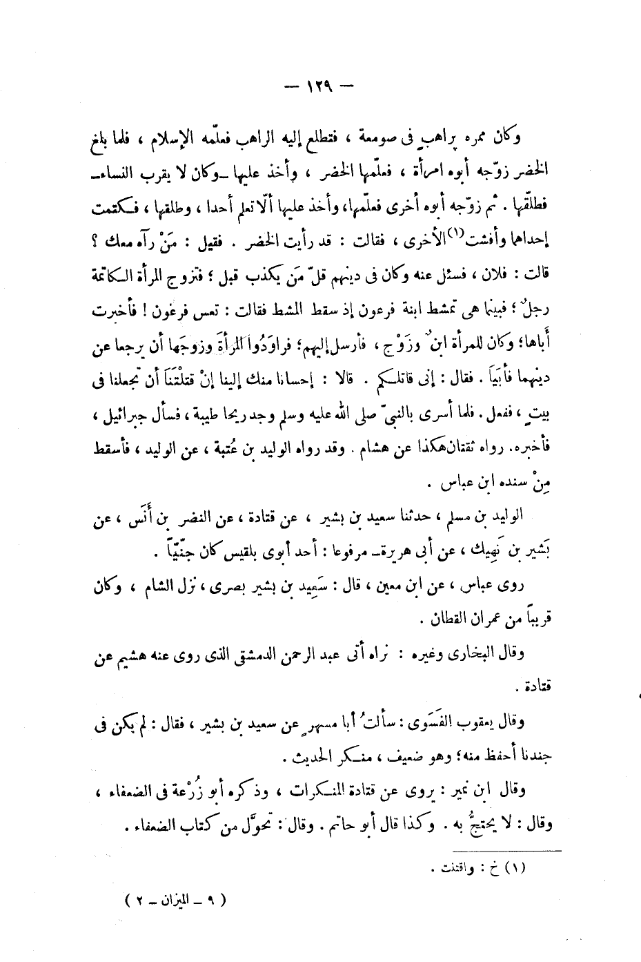 روى عباس، عن ابن معين، قال: سعيد بن بشير بصري، نزل الشام، وكان قريبا من عمران القطان.