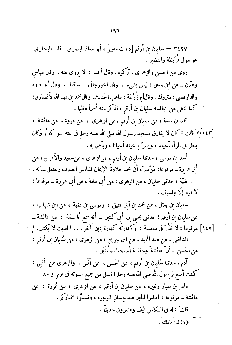 سليمان بن بلال، عن محمد بن أبي عتيق، وموسى بن عقبة، عن ابن شهاب، عن سليمان بن أرقم، حدثني يحيى بن أبي كثير - أنه سمع أبا سلمة، عن عائشة -[145] مرفوعاً: لا نذر في معصية، وكفارته كفارة يمين آخر..الحديث لا يكتب.