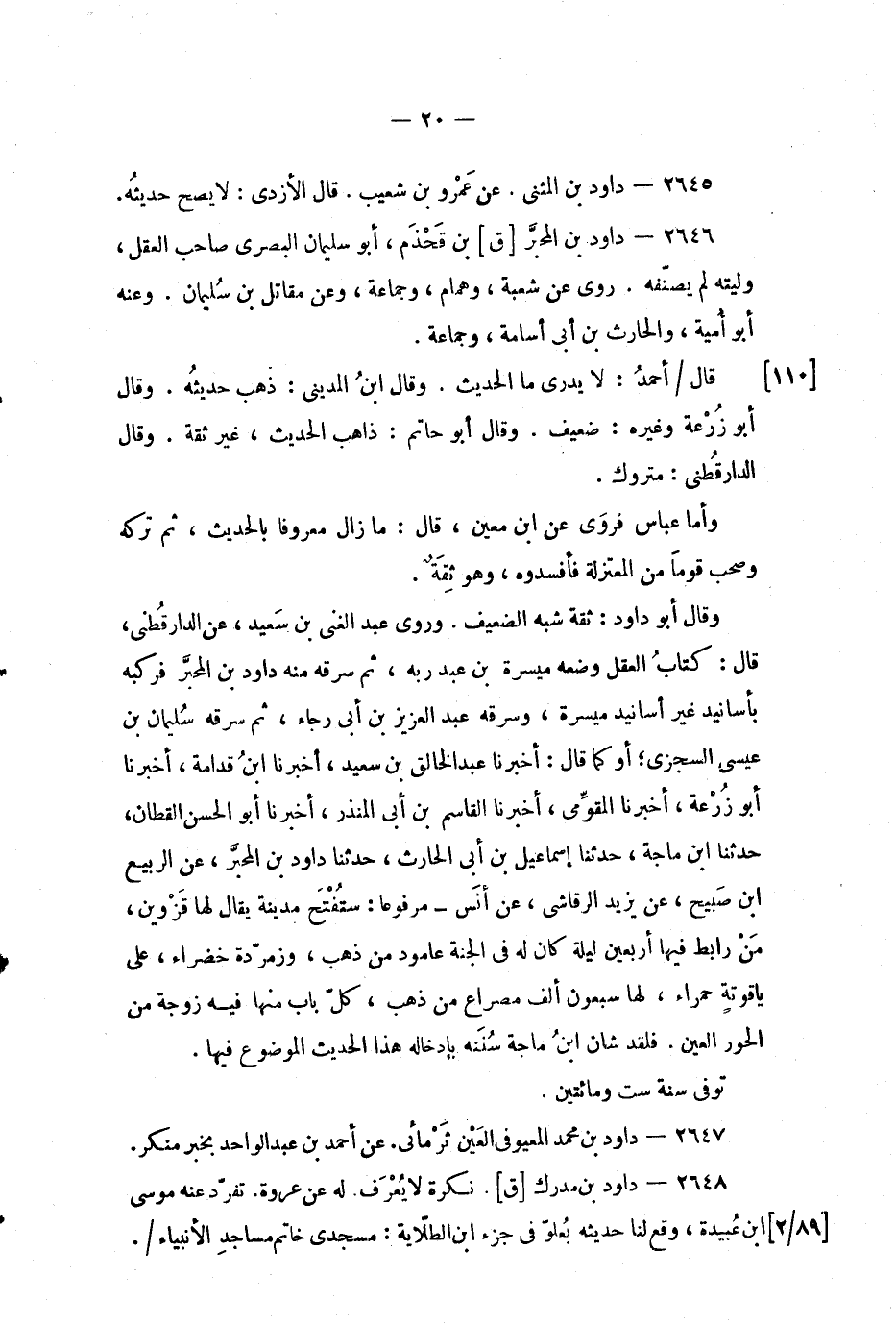 2646 - داود بن المحبر [ق] بن قحذم، أبو سليمان البصري صاحب العقل، وليته لم يصنفه.