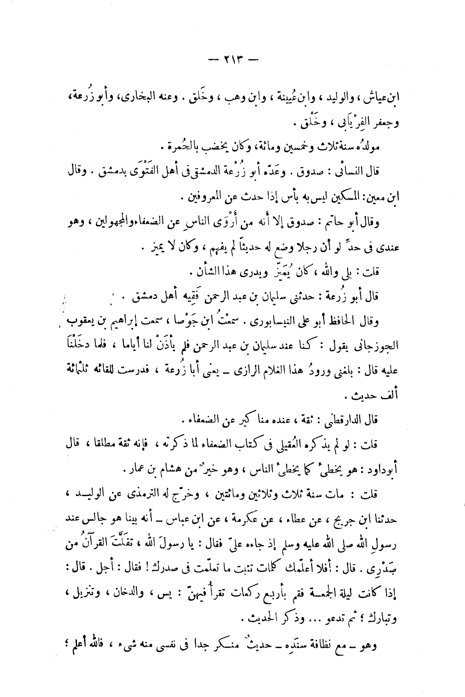 قلت: مات سنة ثلاث وثلاثين ومائتين، وخرج له الترمذي عن الوليد، حدثنا ابن جريج، عن عطاء، عن عكرمة، عن ابن عباس - أنه بينا هو جالس عند رسول الله صلى الله عليه وسلم إذ جاءه علي فقال: يا رسول الله، تفلت القرآن من صدري.