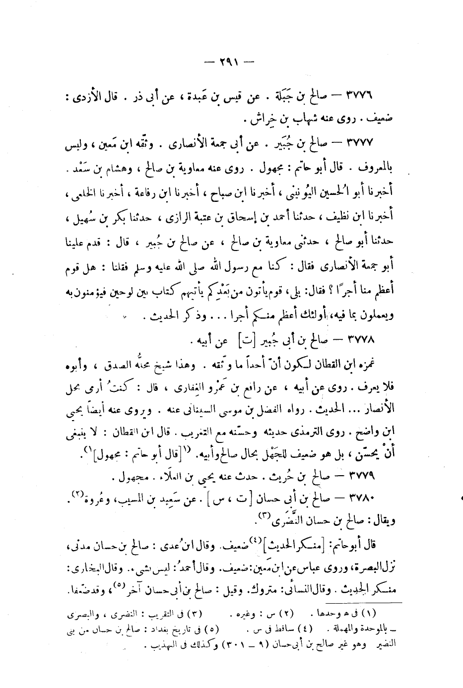 (5) في تاريخ بغداد: صالح بن حسان من بني النضير وهو غير صالح بن أبي حسان (9 - 301) وكذلك في التهذيب.