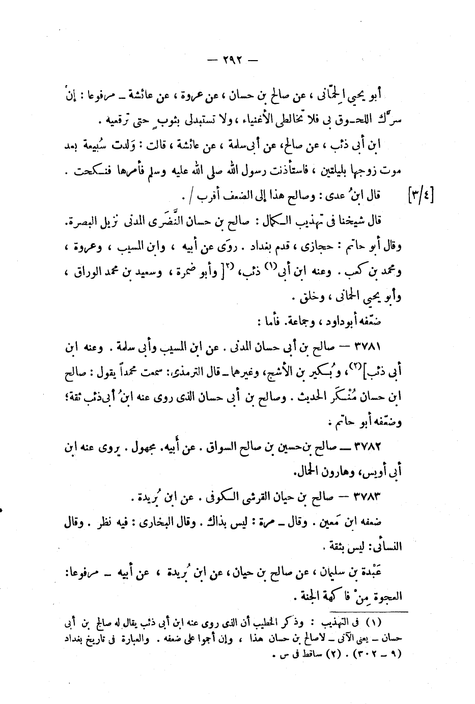 (1) في التهذيب: وذكر الخطيب أن الذي روى عنه ابن أبي ذئب يقال له صالح بن أبي حسان - يعني الاتي - لا صالح بن حسان هذا، وإن أجموا على ضعفه.