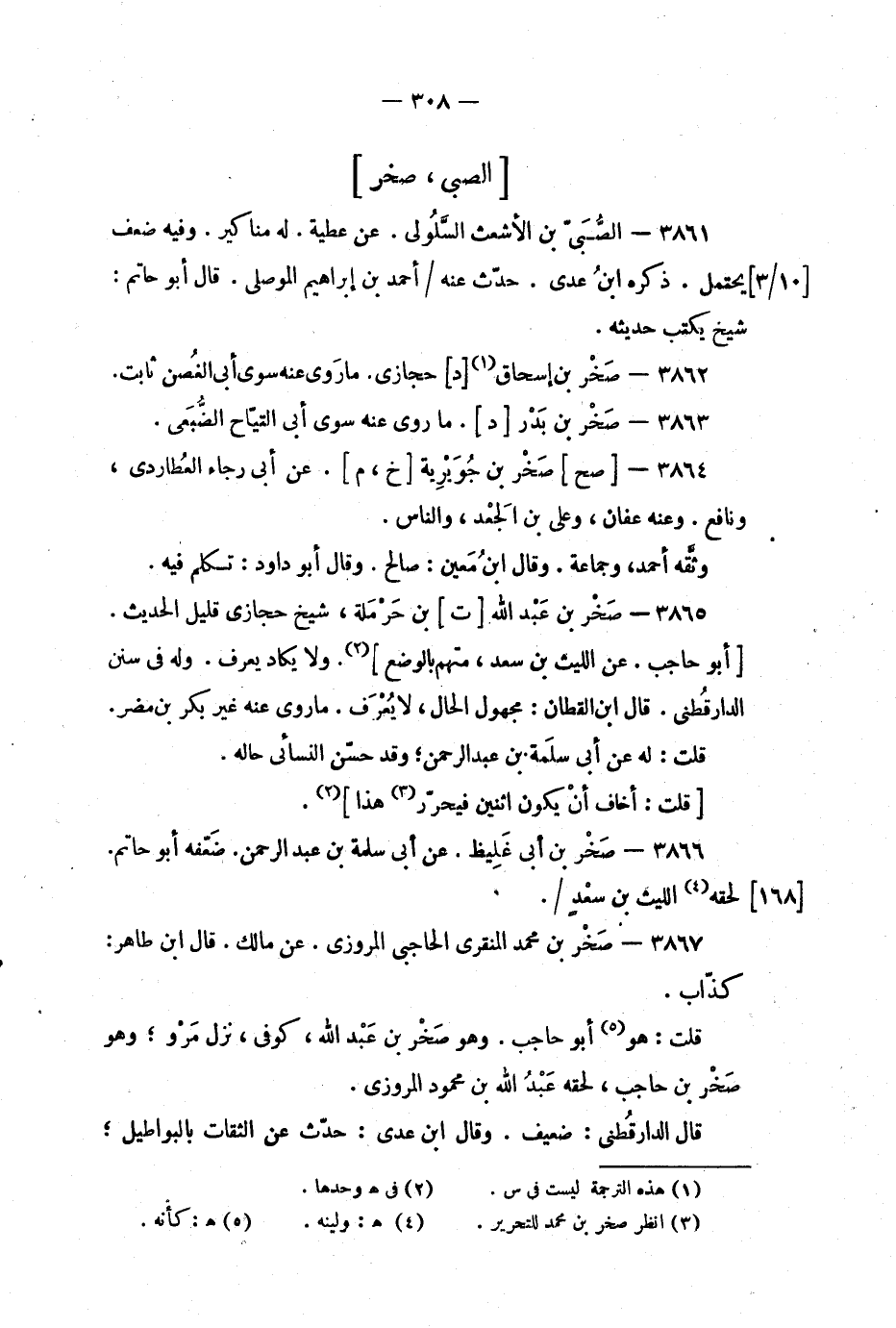 3865 - صخر بن عبد الله [ت] بن حرملة، شيخ حجازى قليل الحديث.