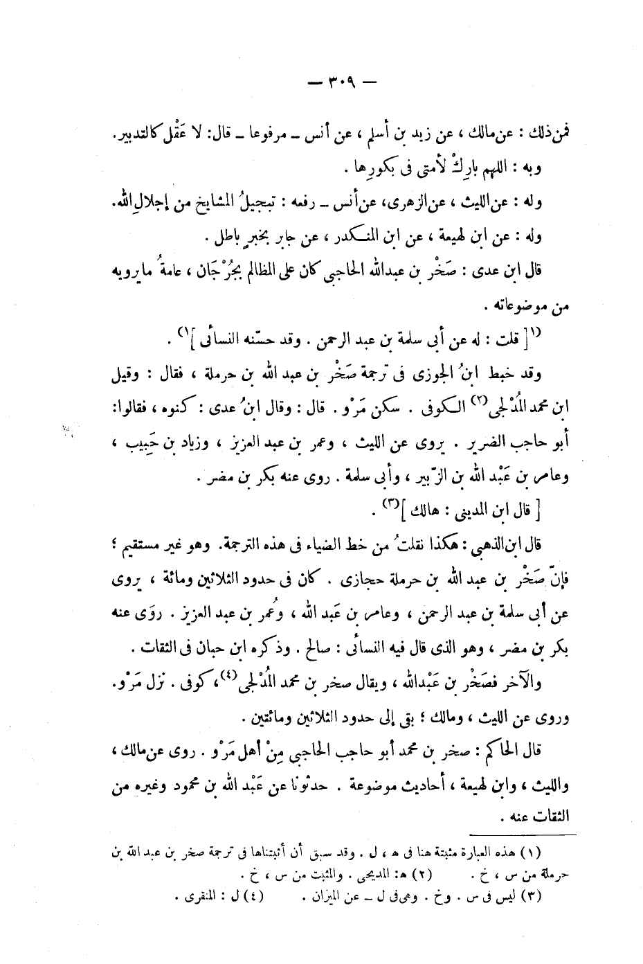 وقد خبط ابن الجوزي في ترجمة صخر بن عبد الله بن حرملة، فقال: وقيل ابن محمد المدلجى (2) الكوفي.
