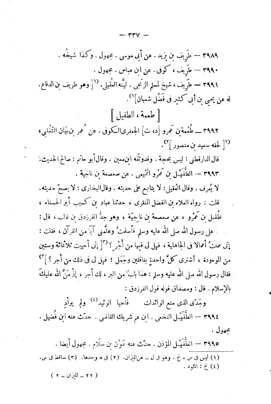 [طعمة، الطفيل] 1) 3992 - طعمة بن عمرو [د، ت] الجعفري الكوفي.