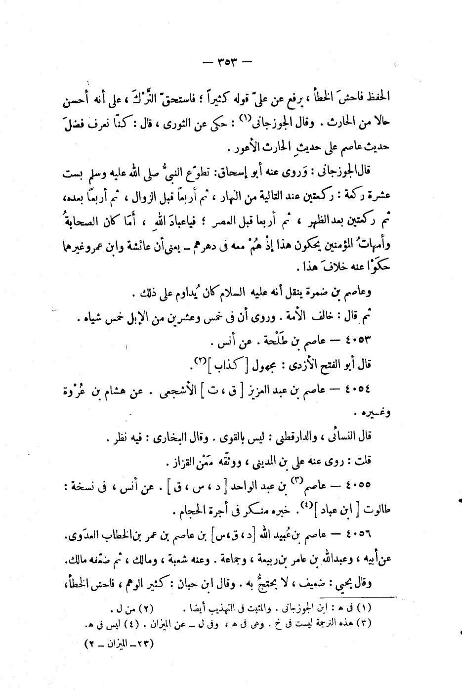 وقال الجوزجاني: حكى عن الثوري، قال: كنا نعرف فضل حديث عاصم على حديث الحارث الأعور.