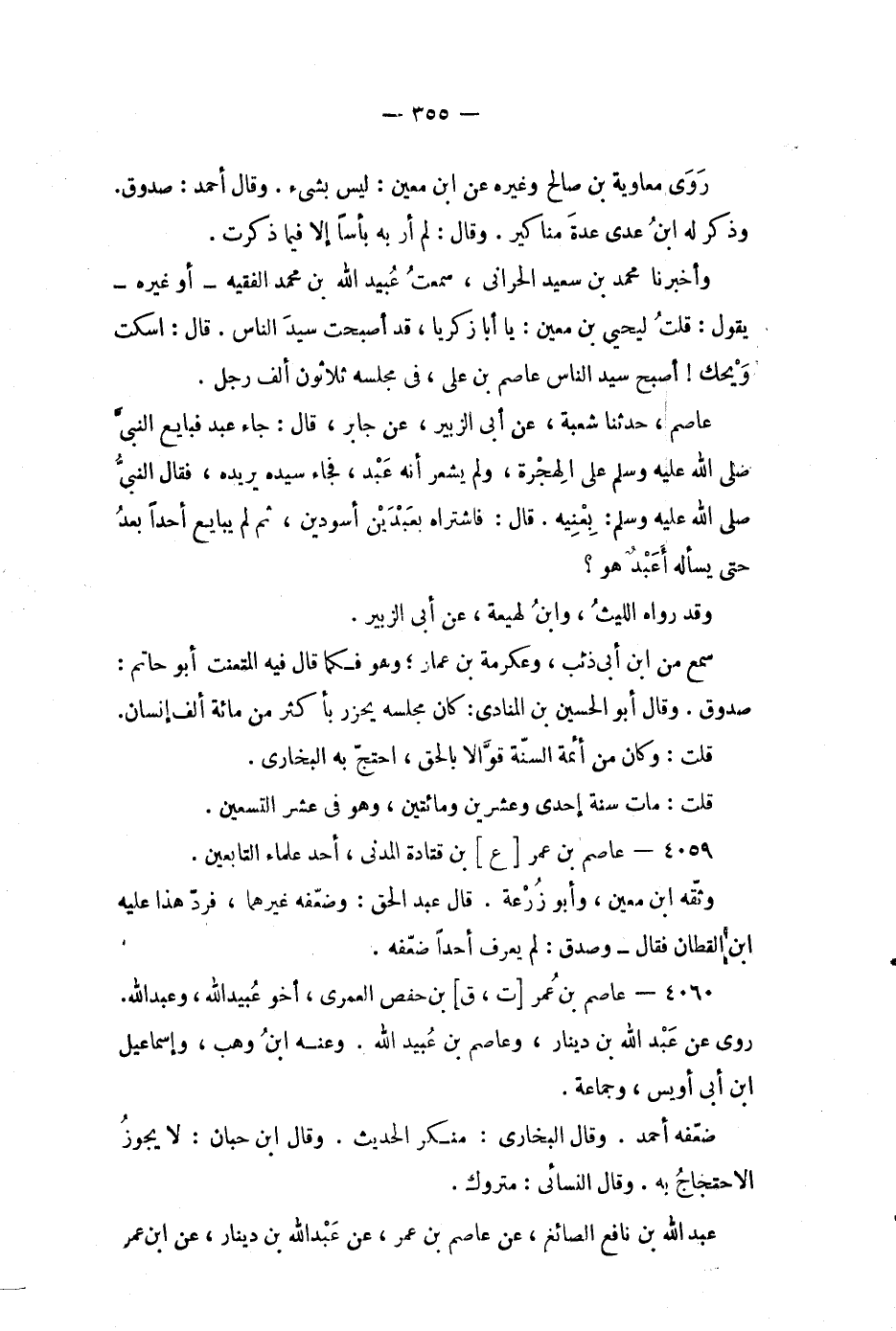وأخبرنا محمد بن سعيد الحرانى، سمعت عبيد الله بن محمد الفقيه - أو غيره - يقول: قلت ليحيى بن معين: يا أبا زكريا، قد أصبحت سيد الناس.