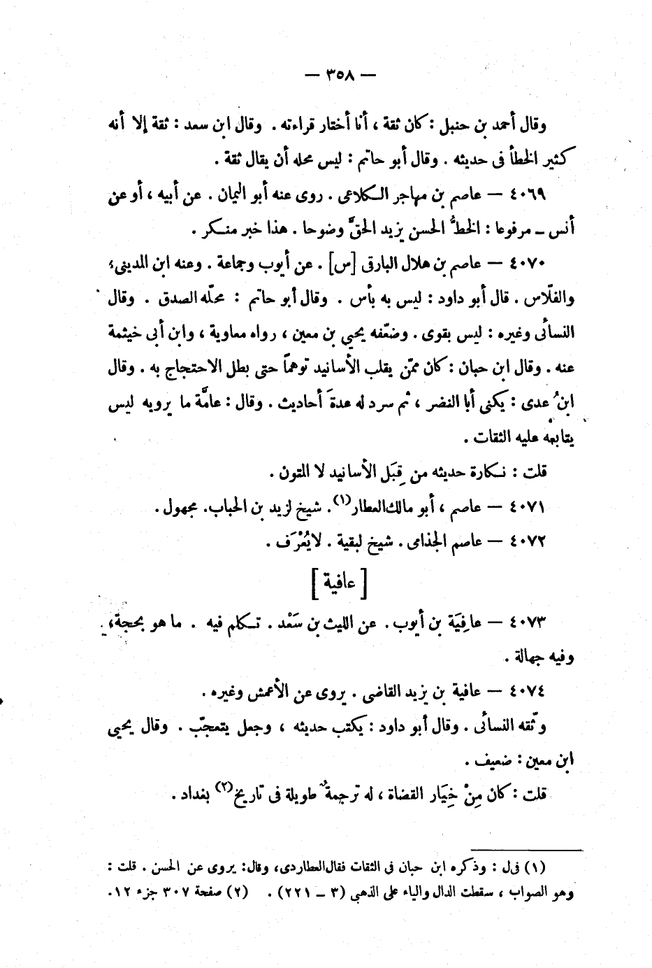 وضعفه يحيى بن معين، رواه معاوية، وابن أبي خيثمة