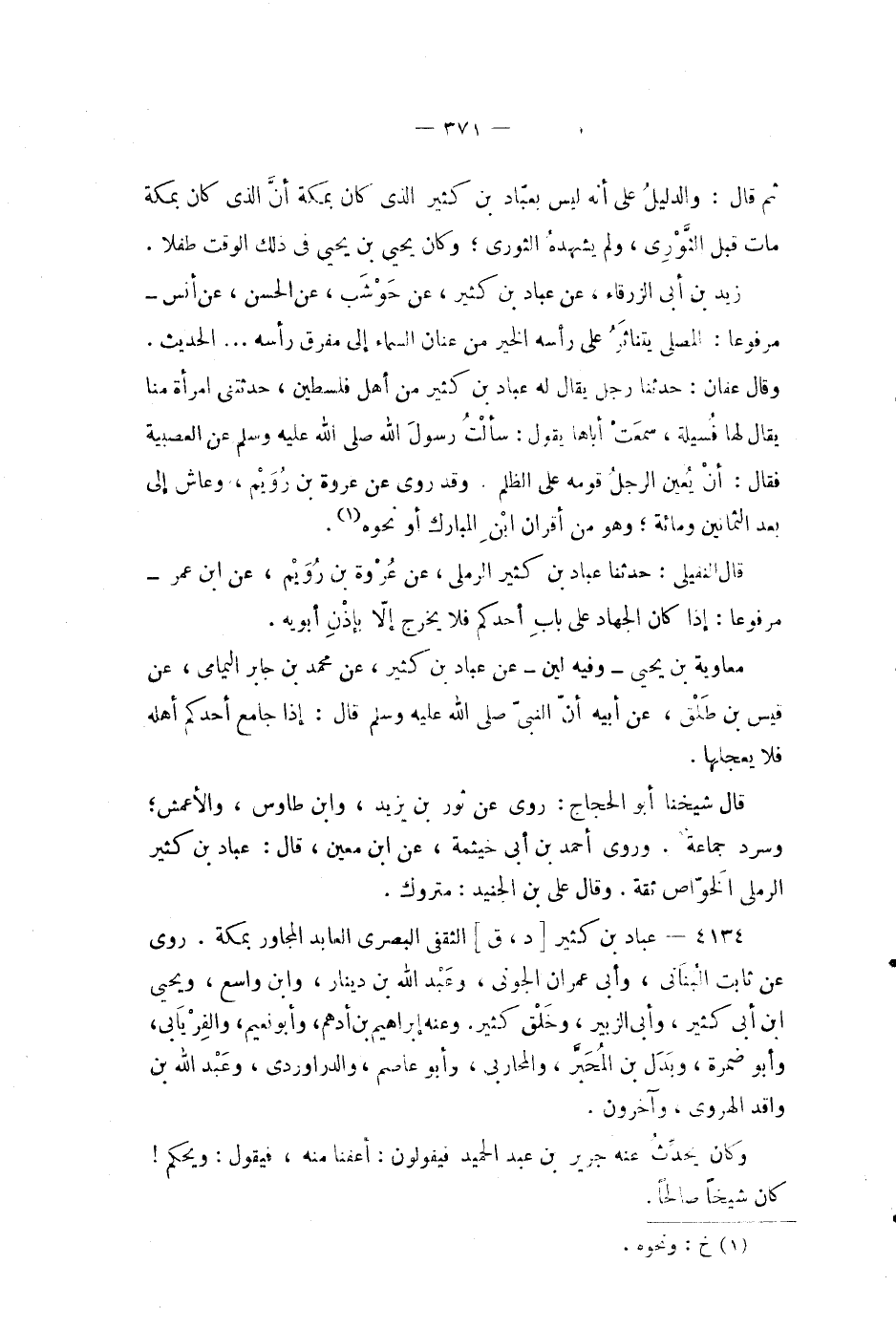 ثم قال: والدليل على أنه ليس بعباد بن كثير الذي كان بمكة أن الذي كان بمكة مات قبل الثوري، ولم يشهده الثوري، وكان يحيى بن يحيى في ذلك الوقت طفلا.