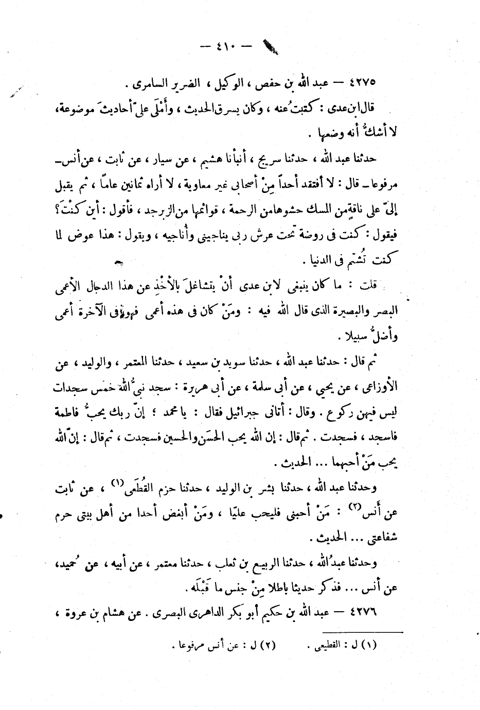 قلت: ما كان ينبغي لابن عدي أن يتشاغل بالاخذ عن هذا الدجال الاعمى البصر والبصيرة الذي قال الله فيه: ومن كان في هذه أعمى فهو في الآخر أعمى وأضل سبيلا.