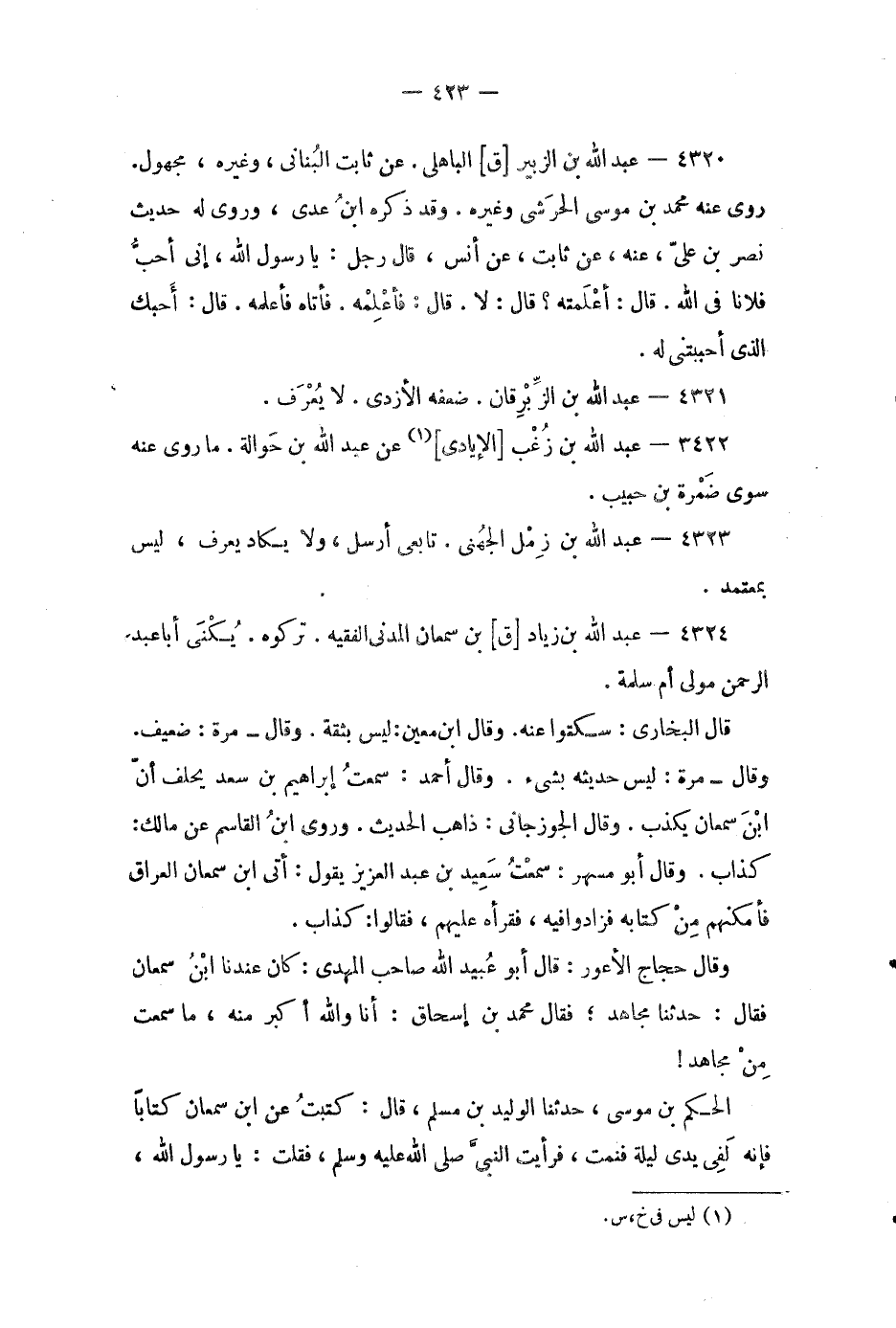 وقد ذكره ابن عدي، وروى له حديث نصر بن علي، عنه، عن ثابت، عن أنس، قال رجل: يارسول الله، إنى أحب فلانا في الله.