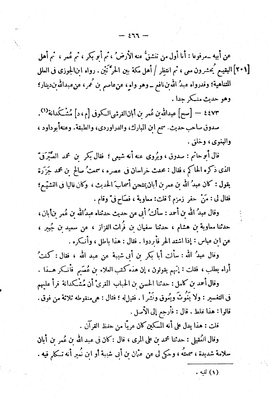 4473 -[صح] عبد الله بن عمر بن أبان القرشي الكوفي [م، د] مشكدانة (1) .