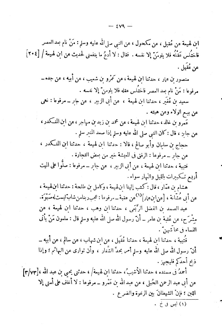 عبد الصمد بن الفضل الربعي، حدثنا ابن وهب، حدثنا ابن لهيعة، عن مشرح، عن عقبة بن عامر - أن رسول الله صلى الله عليه وسلم قال: ملعون من يأتي النساء في محاشهن.