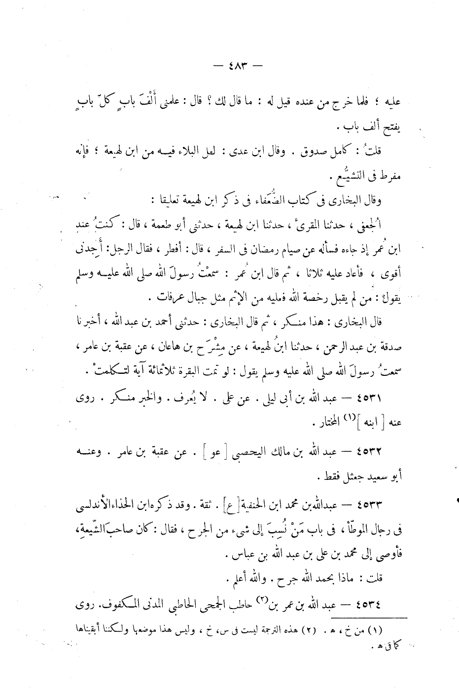 4534 - عبد الله بن عمر بن (2) حاطب الجمحى الحاطبى المدني المكفوف.