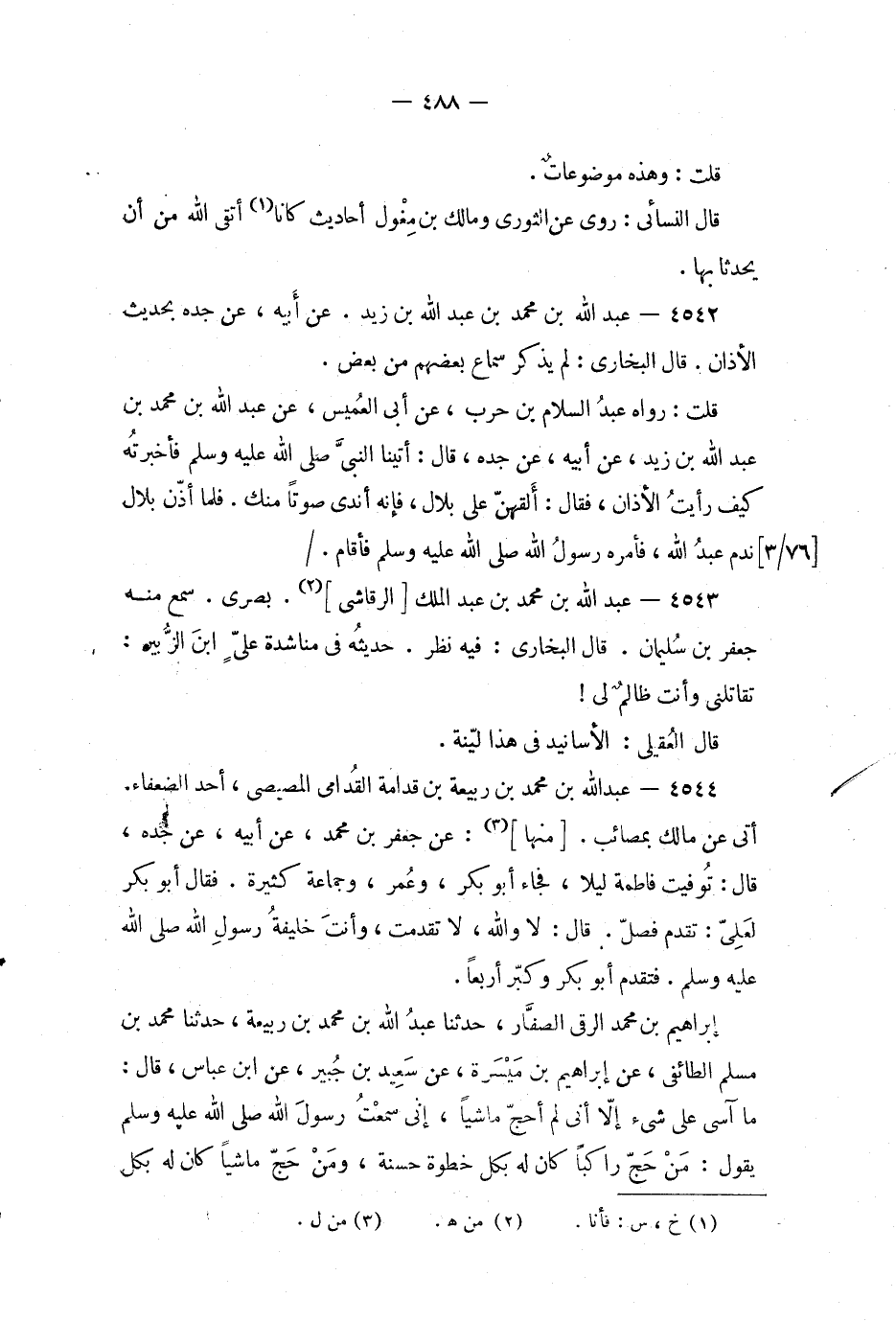 4544 - عبد الله بن محمد بن ربيعة بن قدامة القدامى المصيصى، أحد الضعفاء.