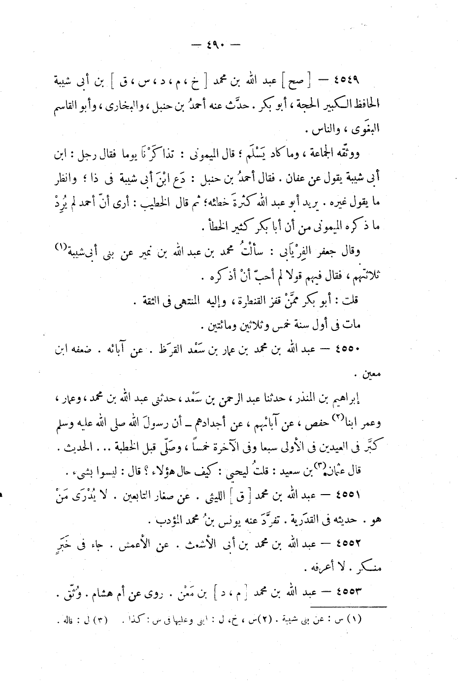4549 -[صح] عبد الله بن محمد [خ، م، د، س، ق] بن أبي شيبة الحافظ الكبير الحجة، أبو بكر.