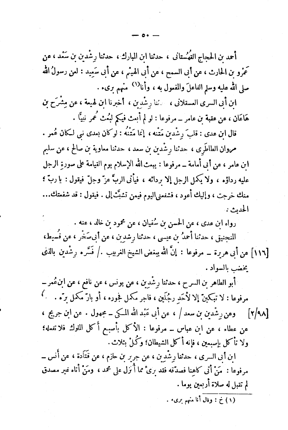 [98 / 2] وعن رشدين بن سعد /، عن أبى عبد الله المكي - مجهول.