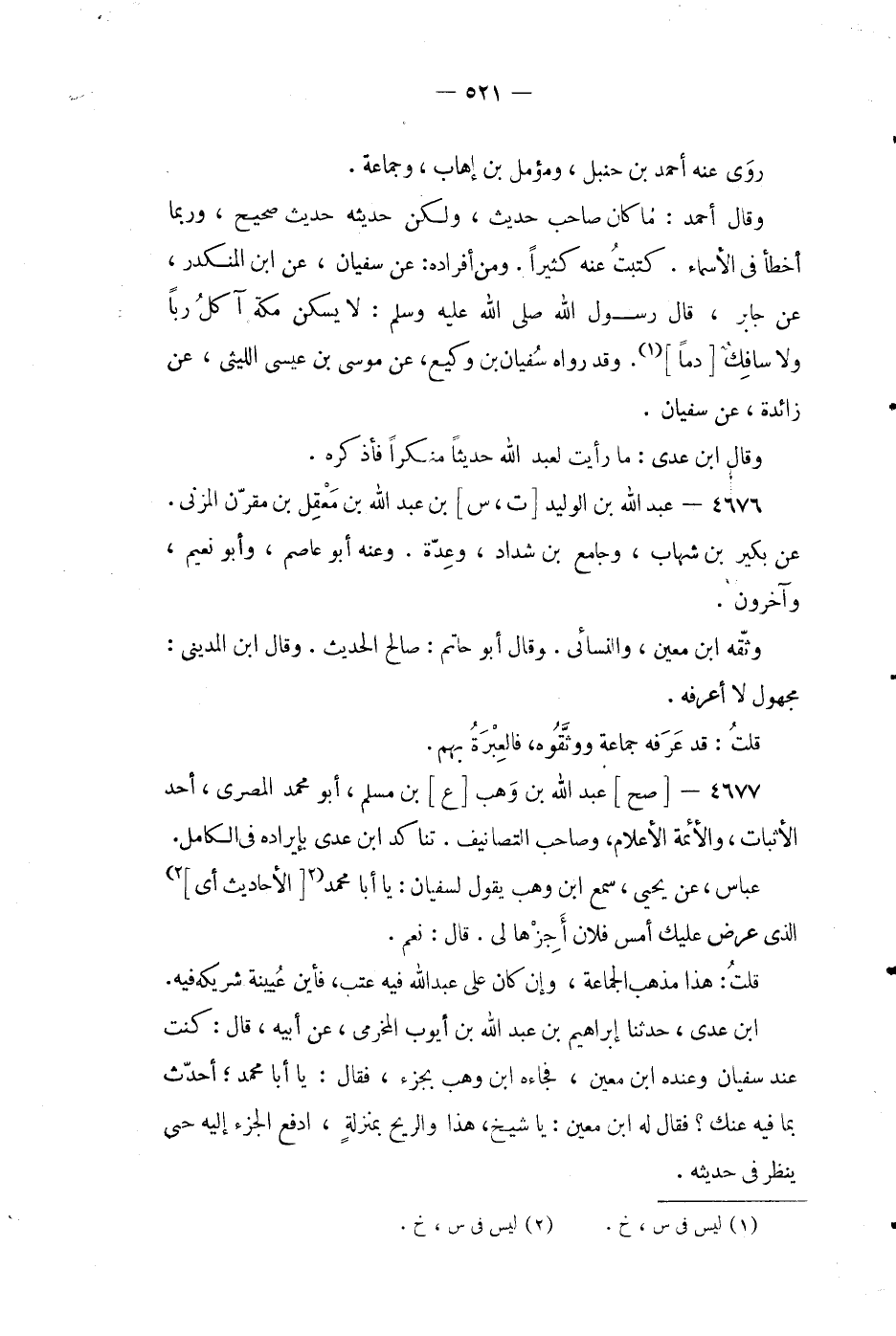 4677 -[صح] عبد الله بن وهب [ع] بن مسلم، أبو محمد المصري، أحد الاثبات، والائمة الاعلام، وصاحب التصانيف.