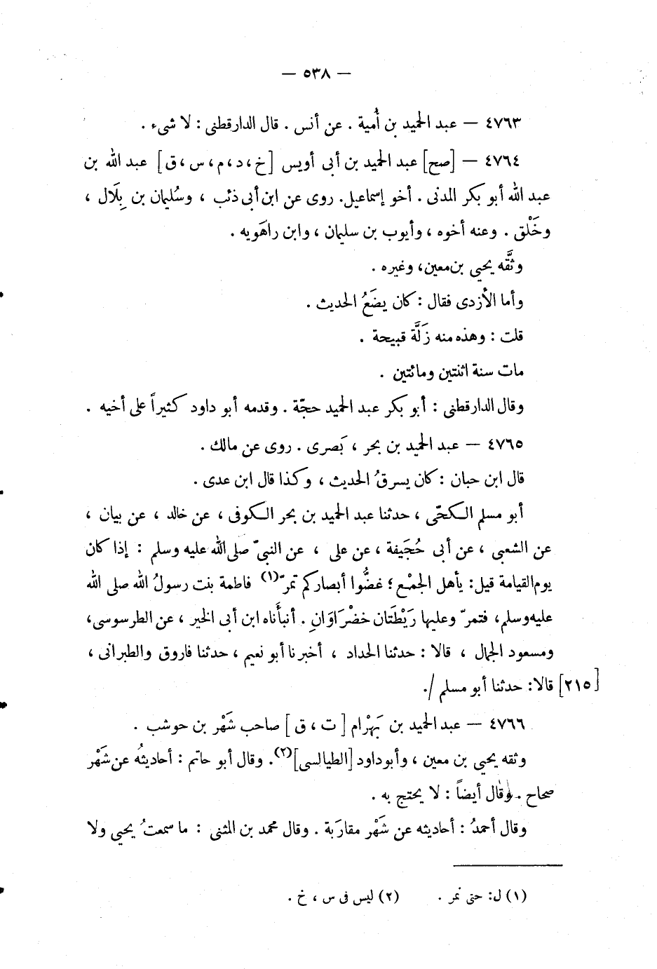 4766 - عبد الحميد بن بهرام [ت، ق] صاحب شهر بن حوشب.