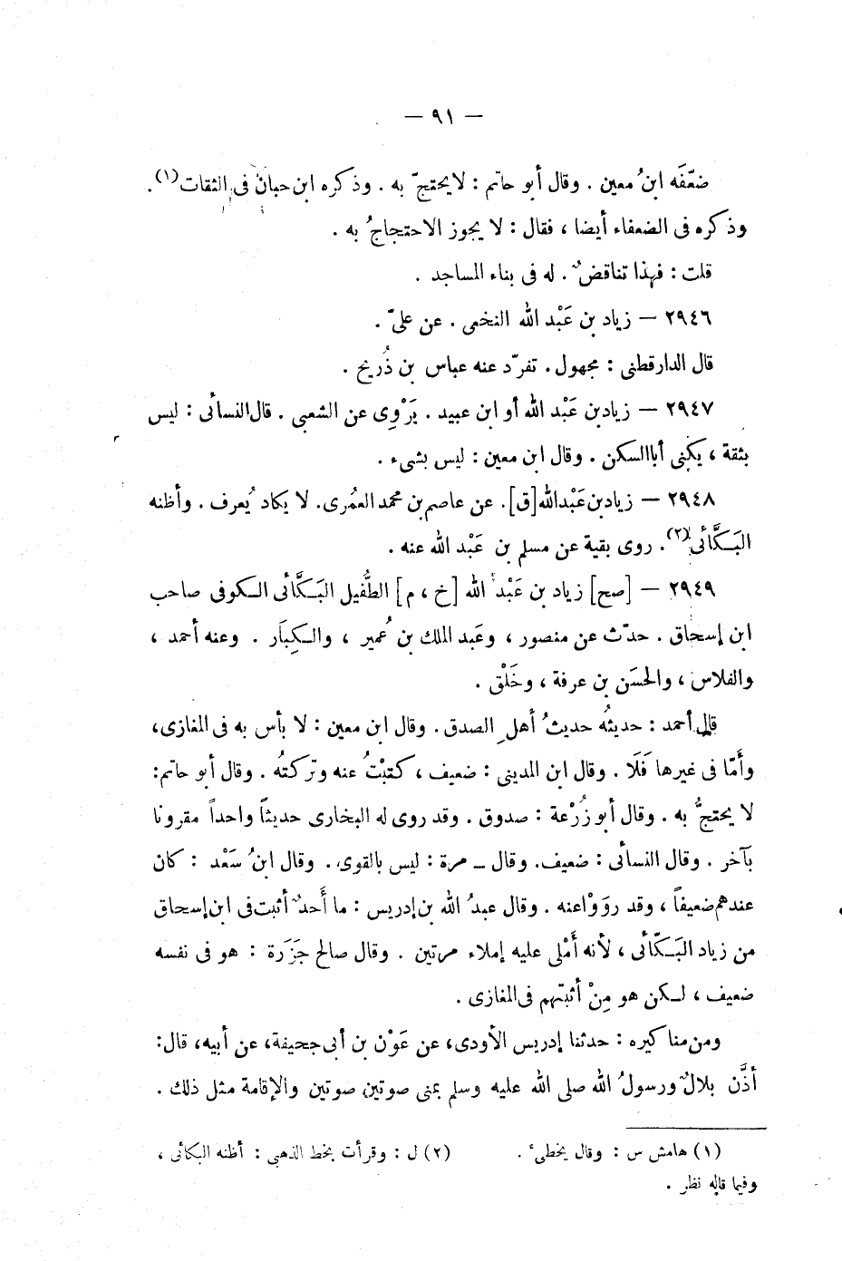 2949 -[صح] زياد بن عبد الله [خ، م] الطفيل البكائى الكوفي صاحب ابن إسحاق.