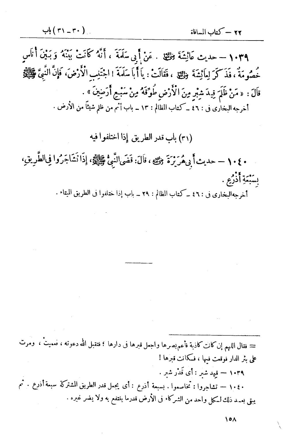 1040 - حديث أَبِي هُرَيْرَةَ رضي الله عنه، قَالَ: قَضَى النَّبِيُّ، إِذَا تَشَاجَرُوا فِي الطَّرِيقِ، بِسَبْعَةِ أَذْرُعٍ