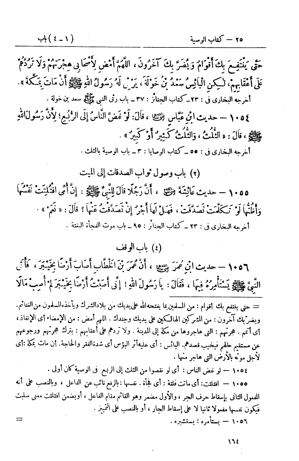 1056 - حديث ابْنِ عُمَرَ، أَنَّ عُمَرَ بْنَ الْخَطَّابِ أَصَابَ أَرْضًا بِخَيْبَرَ، فَأَتَى النَّبِيَّ صَلَّى اللَّهُ عَلَيْهِ وَسَلَّمَ يَسْتَأْمِرُهُ فِيهَا، فَقَالَ: يَا رَسُولَ اللهِ إِنِّي أَصَبْتُ أَرْضًا بِخَيْبَرَ لمْ أُصِبْ مَالاً -[165]- قَطُّ أَنْفَسَ عِنْدِي مِنْهُ، فَمَا تَامُرُ بِهِ قَالَ: إِنْ شِئْتَ حَبَّسْتَ أَصْلَهَا وَتَصَدَّقْتَ بِهَا قَالَ: فَتَصَدَّقَ بِهَا عُمَرُ أَنَّهُ لاَ يُبَاعُ وَلاَ يُوهَبُ وَلاَ يُورَثُ، وَتَصَدَّقَ بِهَا فِي الْفُقَرَاءِ وَفِي الْقُرْبَى وَفِي الرِّقَابِ وَفِي سَبِيلِ اللهِ وَابْنِ السَّبِيلِ وَالضَّيْفِ، لاَ جُنَاحَ عَلَى مَنْ وَلِيَهَا أَنْ يَأكُلَ مِنْهَا بِالْمَعْرُوفِ وَيُطْعِمَ، غَيْرَ مُتَمَوِّلٍ قَالَ (الرَّاوِي) : فَحَدَّثْتُ بِهِ ابْن سِيرِينَ، فَقَالَ: غَيْرَ مُتَأَثِّلٍ مَالاً