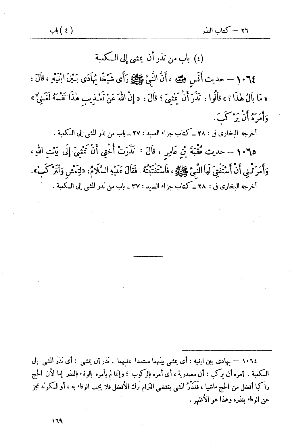 أخرجه البخاري في: 28 كتاب جزاء الصيد: 37 باب من نذر المشي إلى الكعبة