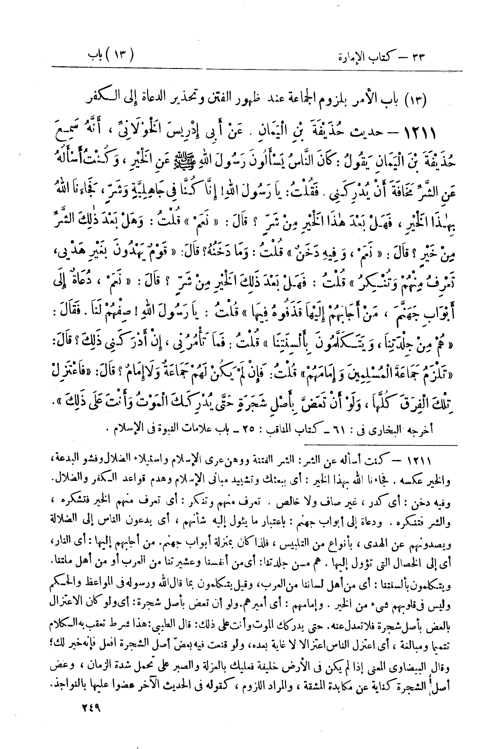 الأمر بلزوم الجماعة عند ظهور الفتن وتحذير الدعاة إلى الكفر