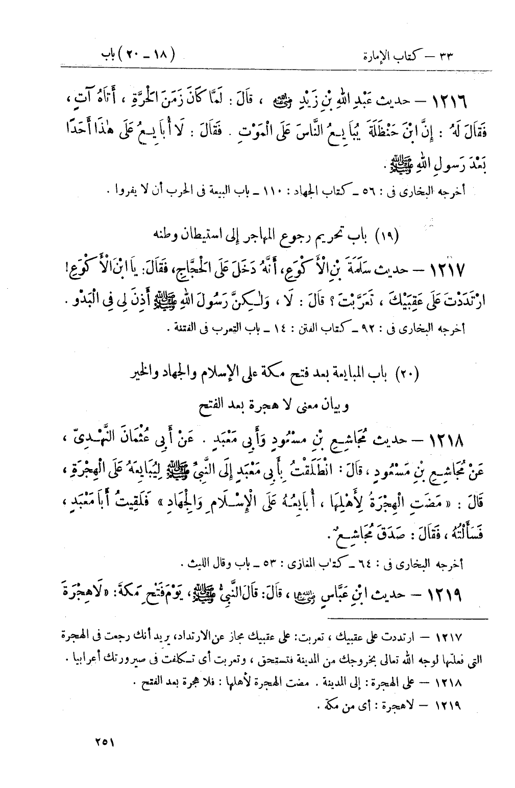 1219 - حديث ابْنِ عَبَّاسٍ، قَالَ: قَالَ النَّبِيُّ صَلَّى اللَّهُ عَلَيْهِ وَسَلَّمَ، يَوْمَ فَتْحِ مَكةَ: لاَ هِجْرَةَ -[252]- وَلكِنْ جِهَادٌ وَنِيَّةٌ، وَإِذَا اسْتُنْفِرْتُمْ فَانْفِرُوا