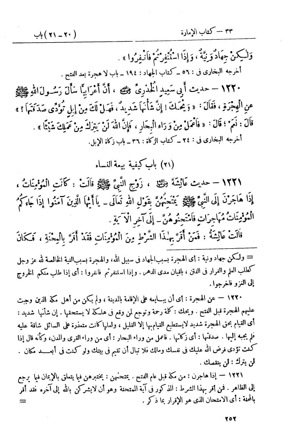 1221 - حديث عَائِشةَ، زَوْجِ النَّبِيِّ صَلَّى اللَّهُ عَلَيْهِ وَسَلَّمَ قَالَتْ: كَانَتِ الْمُؤْمِنَاتُ، إِذَا هَاجَرْنَ إِلَى النَّبِيِّ صَلَّى اللَّهُ عَلَيْهِ وَسَلَّمَ يَمْتَحِنُهُنَّ بِقَوْلِ اللهِ تَعَالَى (يَا أيُّهَا الَّذِينَ آمَنُوا إِذَا جَاءَكُمُ الْمُؤْمِنَاتُ مُهَاجِرَاتٍ فَامْتَحِنُوهُنَّ) إِلَى آخِرِ الآيَة