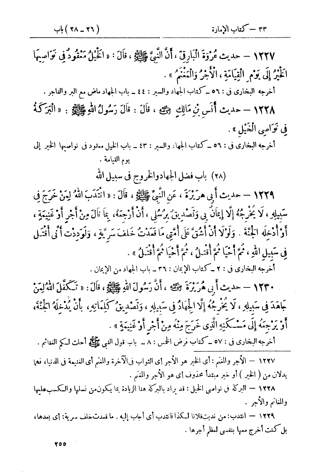 1228 - حديث أَنَسِ بْنِ مَالِكٍ رضي الله عنه، قَالَ: قَالَ رَسُولُ اللهِ صَلَّى اللَّهُ عَلَيْهِ وَسَلَّمَ: الْبَرَكَةُ فِي نَوَاصِي الْخَيْلِ